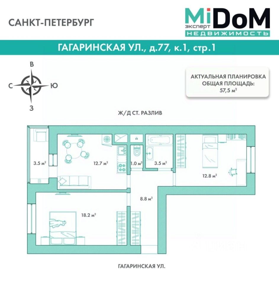Арт. 90957408. МИДОМ ЭКСПЕРТ НЕДВИЖИМОСТЬ предлагает к продаже уютную двухкомнатную квартиру в Курортном районе Санкт-Петербурга!