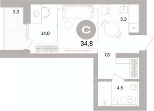 Продается 1-комн. квартира-студия от застройщика с предчистовой отделкой в ЖК "Северный ветер" на 6 этаже. Общая площадь: 34.81 кв.м., площадь гостиной 19.3 кв.м., из которых 5.3 кв.м. выделено под кухонную зону. Все окна выходят на одну сторону. В квартире одна лоджия, один совмещенный санузел. Высота потолков 3.1 м.