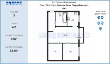 32,9 м²