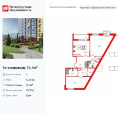 Продается просторная 2-комнатная квартира от застройщика в жилом комплексе "Прайм Приморский" в динамичном Приморском районе.