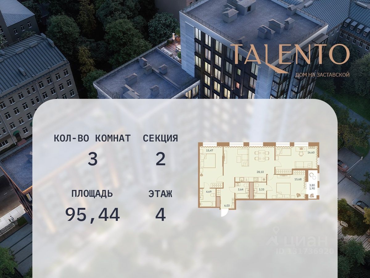 Двухсекционный клубный дом премиум-класса с панорамными окнами высотой 2,5 метра, террасами, пентхаусами, персональным сервисом и интегрированными технологиями "Умный дом" расположен в шаге от Московских Триумфальных ворот на Заставской улице, 30. При разработке проекта архитектурная мастерская Юсупова гармонично вписала жилой дом в окружающую застройку, использовав краснокирпичную облицовку и элементы декора в стиле модерн. В оформлении проекта принимает участие и знаменитый художник с мировым именем Михаил Шемякин. Маскароны из его коллекции "Метафизические головы" будут украшать главный фасад Talento. А интерьеры дома разработаны по проекту Олега Клодта потомка петербургского скульптора времен царствования Николая I. Небольшая отдаленность от географического центра Петербурга компенсируется развитым окружением, зеленью, прекрасной транспортной доступностью и богатым историческим наследием. Рядом с Talento сохранилось большое количество купеческих доходных домов, церквей и монастырей, образцов императорской промышленной архитектуры и знаменитого сталинского ампира.