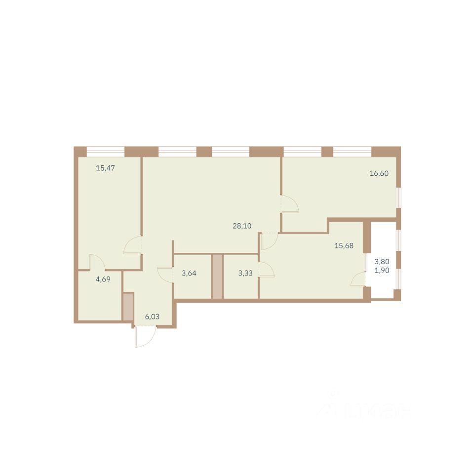Общая площадь95,44 м²