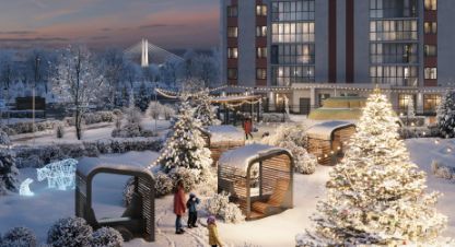 Во дворе появятся детские площадки для ребят разных возрастов, уличные тренажеры, площадка для командных игр. Уютные зеленые лаунжи для спокойного отдыха с книгой и оборудованная зона для выгула питомцев. На первых этажах расположатся магазины и сервисы первой необходимости. На территории комплекса застройщик возведет детский сад и школу. В двух шагах Октябрьская набережная с пешеходным променадом и сад Дача Чернова.