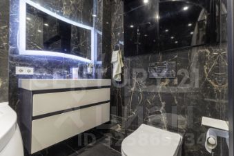 Совмещенный санузел облицован изысканным итальянским керамогранитом и оснащен сантехникой премиального французского бренда с использованием современной инсталляции. В санузле установлен современный накопительный водонагреватель, который обеспечивает полную автономность и гарантирует бесперебойное наличие горячей воды вне зависимости от графиков сезонных отключений городских служб.