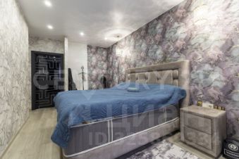 Уютная спальня укомплектована роскошной кроватью с дорогой обивкой основания, выполненной на заказ и высоким анатомическим матрасом премиум-класса, что гарантирует исключительный уровень комфорта и полноценное восстановление сил.