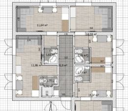 В квартире выполнена качественная отделка, идеально подходит для сдачи в аренду. 4 изолированных комнаты со своими санузлами, зонами отдыха, гардеробными и кухнями, отделенные общим коридором. В каждой комнате есть всё, необходимое для проживания.
