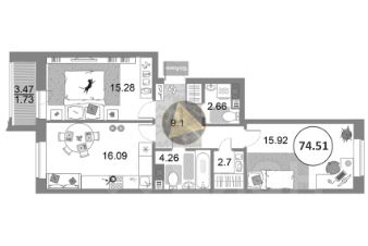 Срочно продаётся 2-комнатная квартира общей площадью 74,51 м2. в Приморском районе Санкт-Петербурга. Квартира находится в доме комфорт-класса, оформленном в стиле античной эстетики. Идеальный вариант для тех, кто хочет жить в стильном доме в окружении природы.