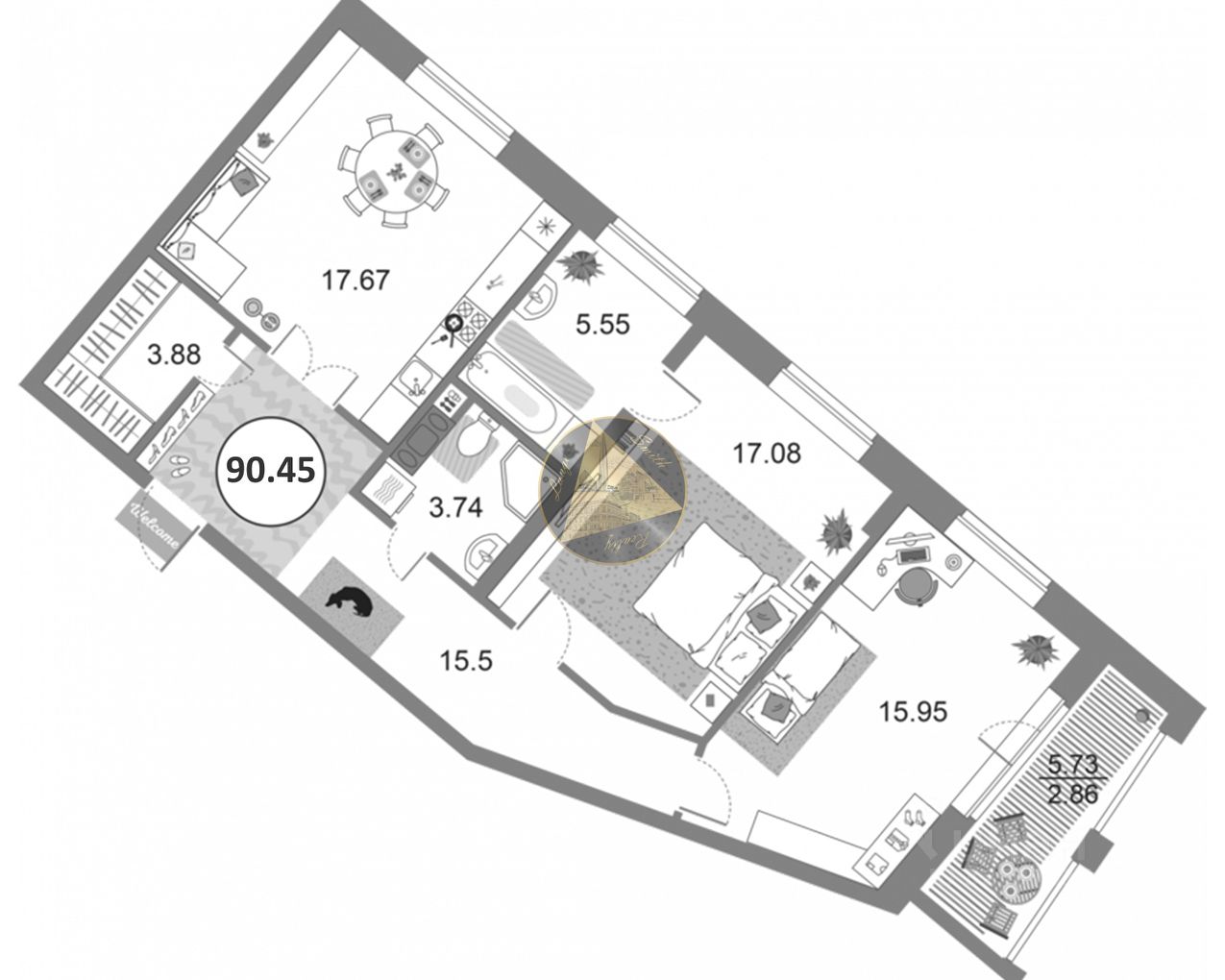 - Общая площадь квартиры 90.45 м2