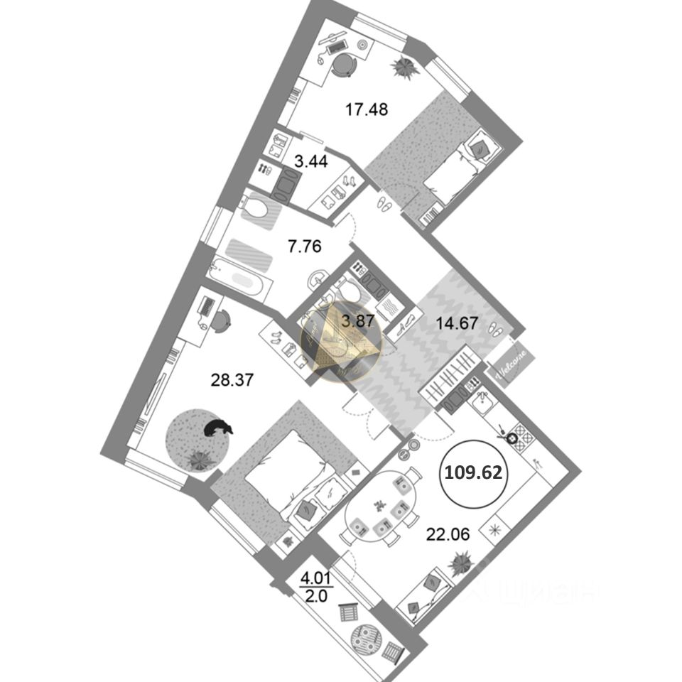 - Общая площадь квартиры 109.62 м2