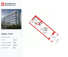 Удобная, классическая, функциональная европланировка, вместительная прихожая 3.05 м². Общая площадь студии - 24.9 м², жилая 18.32 м², высота потолка 2.77 м.