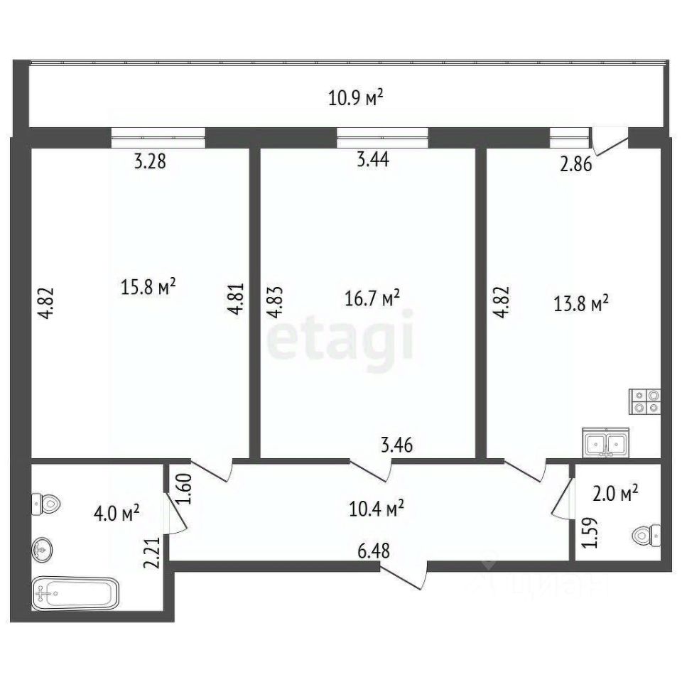 Комнаты имеют правильную форму и оптимальные размеры: первая комната — 16.7 кв.м, вторая — 15.8 кв.м, а просторная кухня площадью 13.8 кв.м станет настоящим сердцем вашего дома. В квартире предусмотрены два санузла, что значительно упрощает повседневную жизнь. Коридор площадью 10.4 кв.м создает ощущение простора, а шикарный балкон длиной 10.9 кв.м, выходящий из кухни, станет вашим любимым местом для отдыха. На балконе установлены розетки и освещение, а также сделан тёплый пол для максимального комфорта.