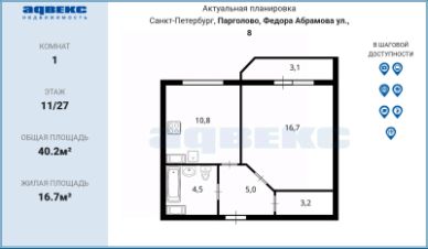 Ремонт от застройщика. Балкон остеклен.