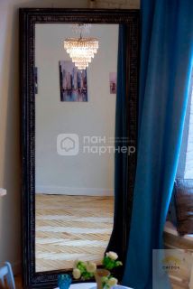 Встроенная кухня с холодильником и электрической плитой позволяет не только готовить, но и создавать атмосферу домашнего уюта. Особое внимание стоит обратить на камин, который станет не только элементом уюта, но и важным акцентом в интерьере. Великолепное зеркало с люстрой завершает стиль комнаты, добавляя ей изысканности и элегантности.
