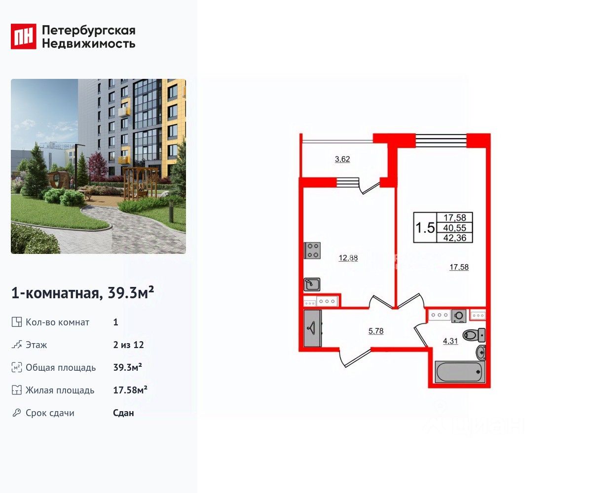 Продается просторная 1-комнатная квартира от застройщика в жилом комплексе "Прайм Приморский" в динамичном Приморском районе.