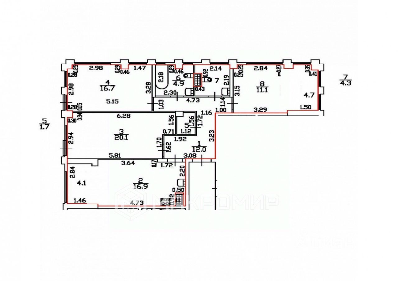 Два совмещенных санузла (4.9 + 4.3 м²) с окнами: Удобство для семьи, естественная вентиляция, свет.