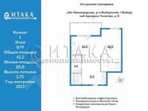 Предлагается к продаже просторная однокомнатная квартира площадью 42,2м2 в современном и уникальном ЖК "Малая Финляндия" 2017 года. Этаж 8/9. Если Вы цените комфорт и уют, и близость к природе, то это то, что Вы ищите!