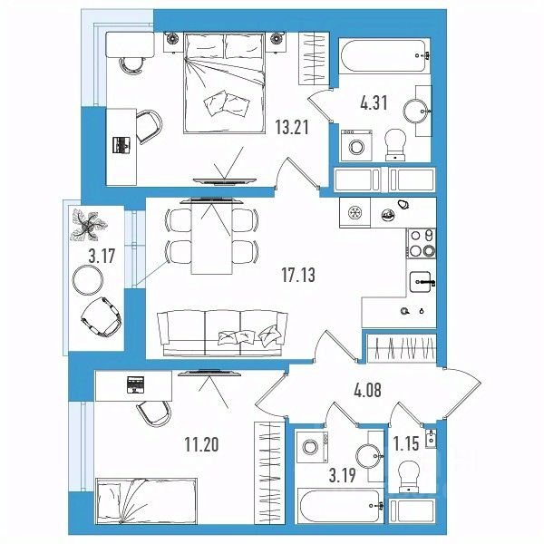 Квартиры с угловым остеклением, двумя большими ванными и дополнительным окном в рабочей зоне кухни.
