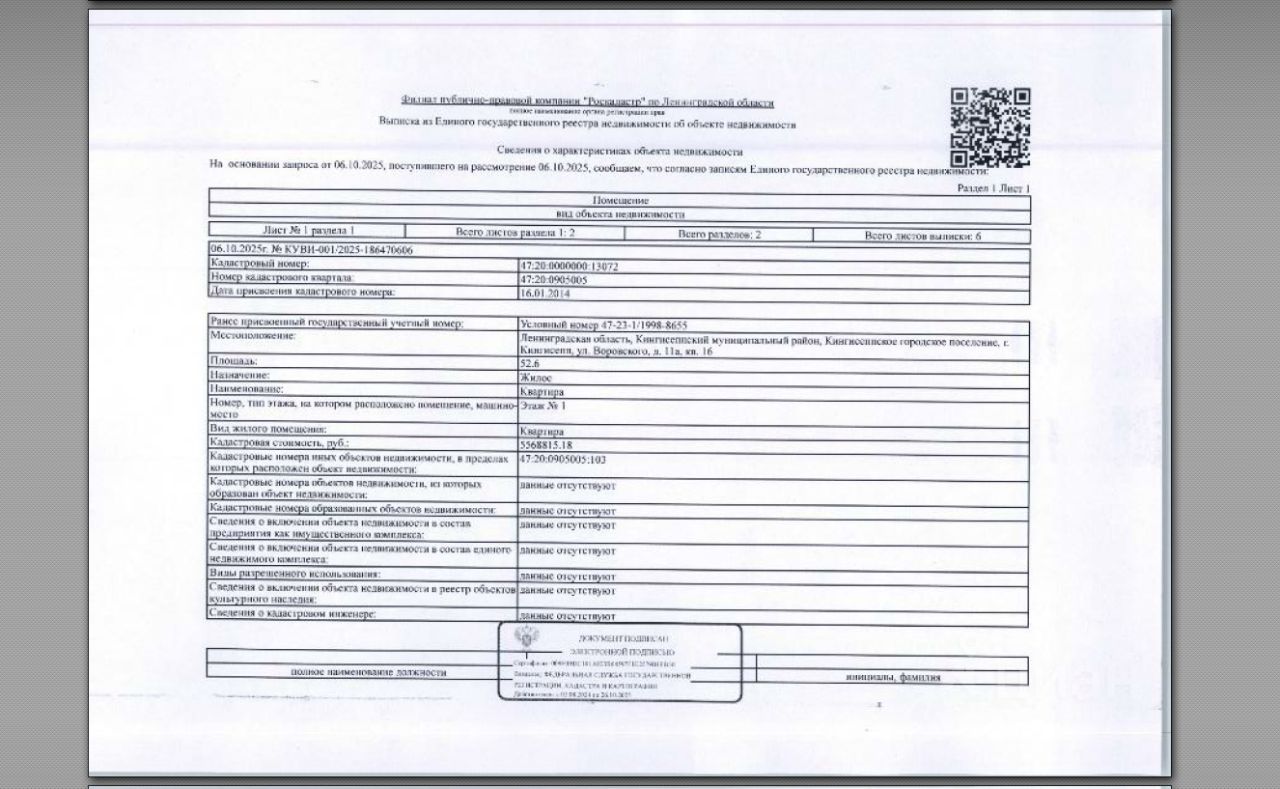 Подвергнутое аресту принадлежащее должнику Шукшиной А.С. находящееся в залоге у АО Банк ДОМ.РФ имущество: квартира кад. 47:20:0000000:13072 общ.пл.52,6 кв.м. по адресу Ленинградская область, Кингисеппский муниципальный район, Кингисеппское городское поселение, г. Кингисепп, ул. Воровского, д. 11а, кв. 16. Согласно предоставленной судебным приставом-исполнителем форме 9 в занимаемом помещении зарегистрировано 1 человека (Форма 9 от 06.10.2025г.). Информация о задолженности по взносам на капитальный ремонт ФССП не предоставлена. Обременение-ипотека, запреты регистрационных действий.
