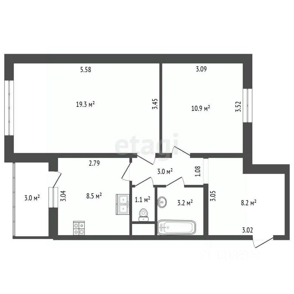 Планировка "со смыслом": Две изолированные комнаты разного размера (большая и поменьше) подойдут и для семьи с ребенком, и для кабинета/гостевой. Окна на две стороны — это всегда максимум света и отличная проветриваемость.