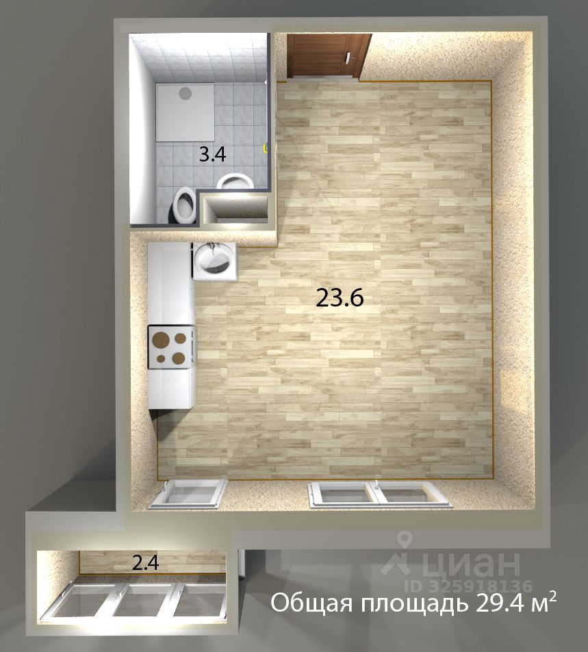 -Квартира имеет просторную комнату 23.6 м. с объедененной кухонной зоной и выходом на утепленный балкон, также совмещённый санузел с ванной.