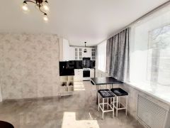 Совмещенный сан узел большой, установлена новая дорогая сантехника. Есть кладовка, которую можно использовать под гардеробную. Кухня- гостиная порадует вас комфортом. Современный дизайн встроенной мебели по душе придется хозяйкам. Расположение полок, шкафчиков, доводчики - все очень удобно и классно.