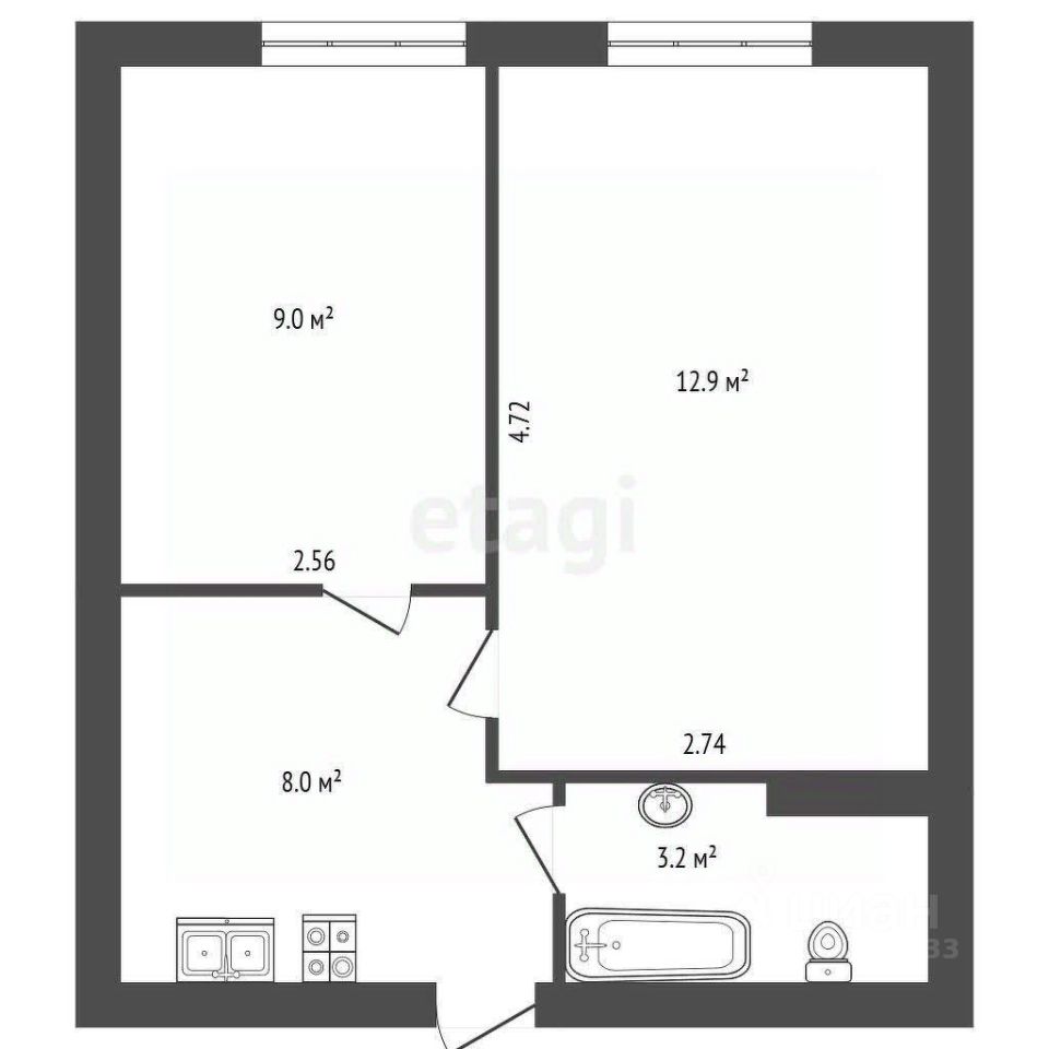 Площадь: две РАЗДЕЛЬНЫЕ комнаты (13 м² + 9 м²), кухня 8 м².
