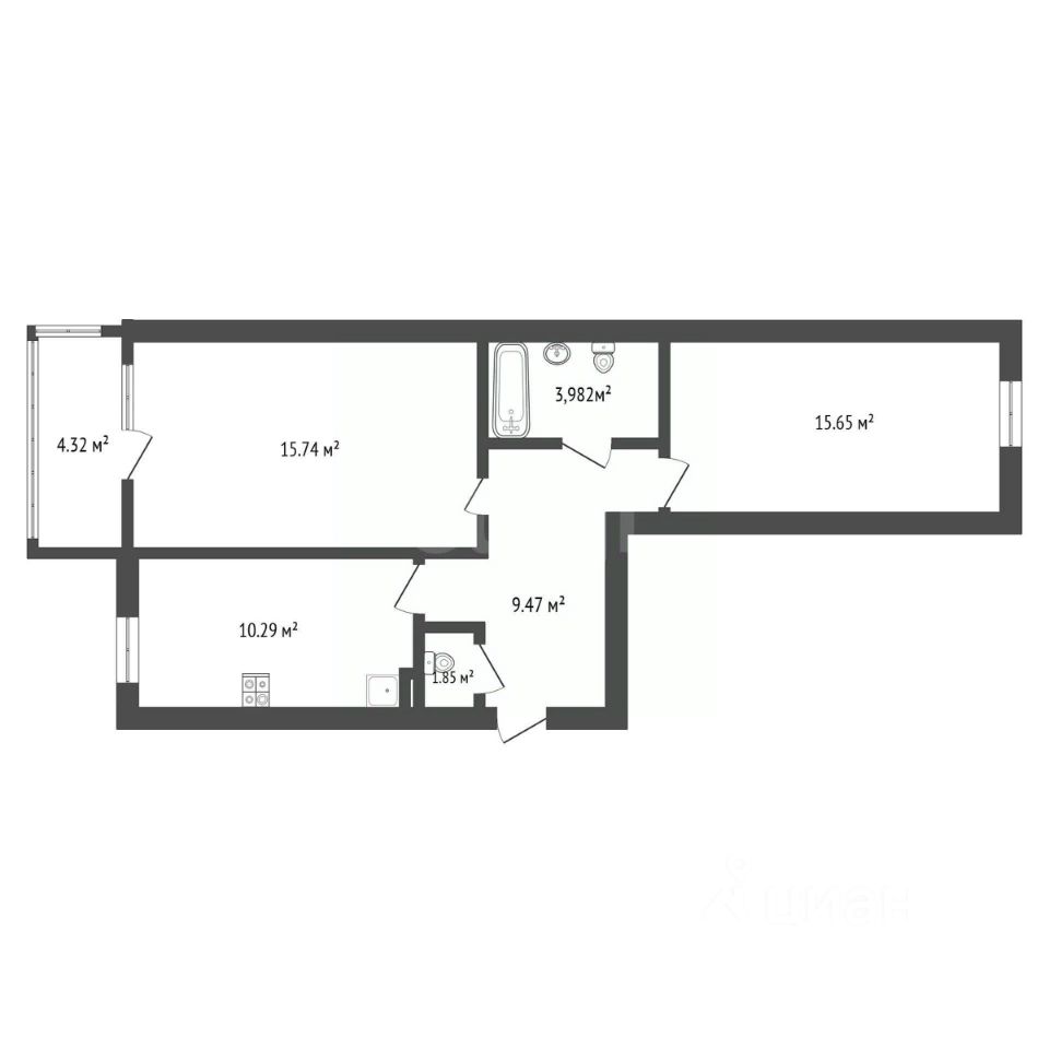 Санузел ( совмещ. ) - 4 кв.м.