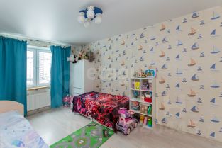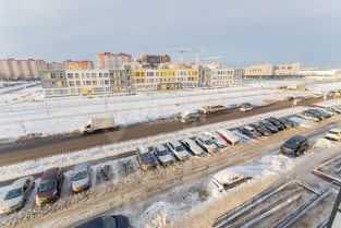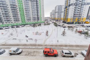 Во дворе раположен десткий сад, окна квартиры выходят на новую, большую школу. На первых этажах коммерция, большое колличество магазинов, кафе, пекарни, пункты выдачи, салоны красоты и т.д.