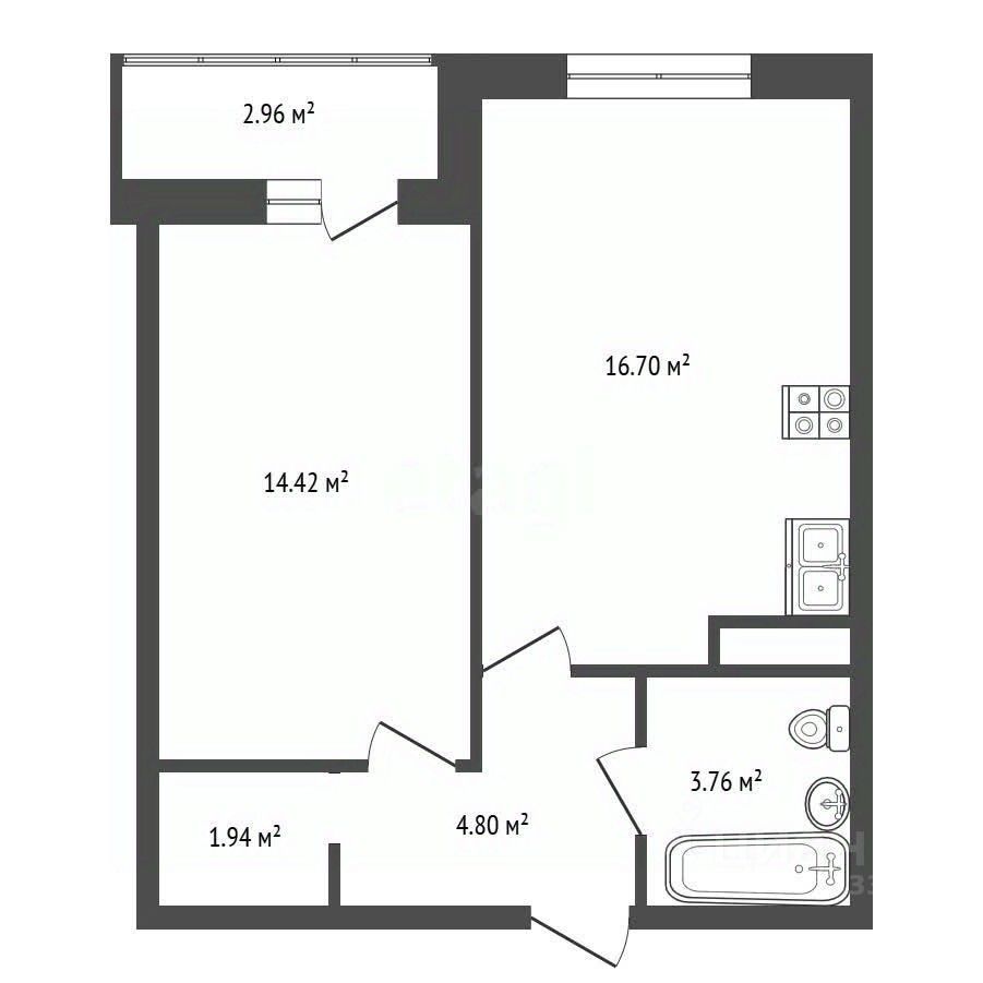 • Спальня: 14,42 м² с выходом на лоджию
