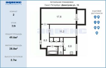Квартира расположена на 7 этаже 9 этажного кирпичного дома. В квартире косметический ремонт, есть всё необходимое для проживания либо сдачи в аренду. Две изолированные комнаты, просторный коридор, квадратная кухня и множество встроенных шкафов. Всё, что вы видите на фото, остаётся новым владельцам. Отличная планировка квартиры, дом ЖСК, ухоженная парадная, прекрасные соседи. Инфраструктура: Во дворе школа и детский сад, детские площадки, взрослая и детская поликлиники, в доме магазины. В пешей доступности есть всё: магазины, аптеки, салоны красоты, фитнес, кафе и рестораны. Остановки общественного транспорта прямо у дома. Удобная транспортная доступность до любой части города. О сделке: 1 взрослый собственник, никто не прописан, никаких обременений, подходит под ипотеку и мат. капитал, прямая продажа, готовы быстро выйти на сделку. Не упустите свой шанс купить отличную квартиру во Фрунзенском районе! Звоните, приезжайте на просмотр!