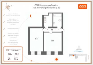 Предлагаем вашему вниманию уютную и светлую 2-комнатную квартиру, 70 кв. м, расположенную, всего в нескольких шагах от величественного Казанского собора. Эта квартира — идеальный выбор как для комфортного проживания, так и для успешного инвестирования.