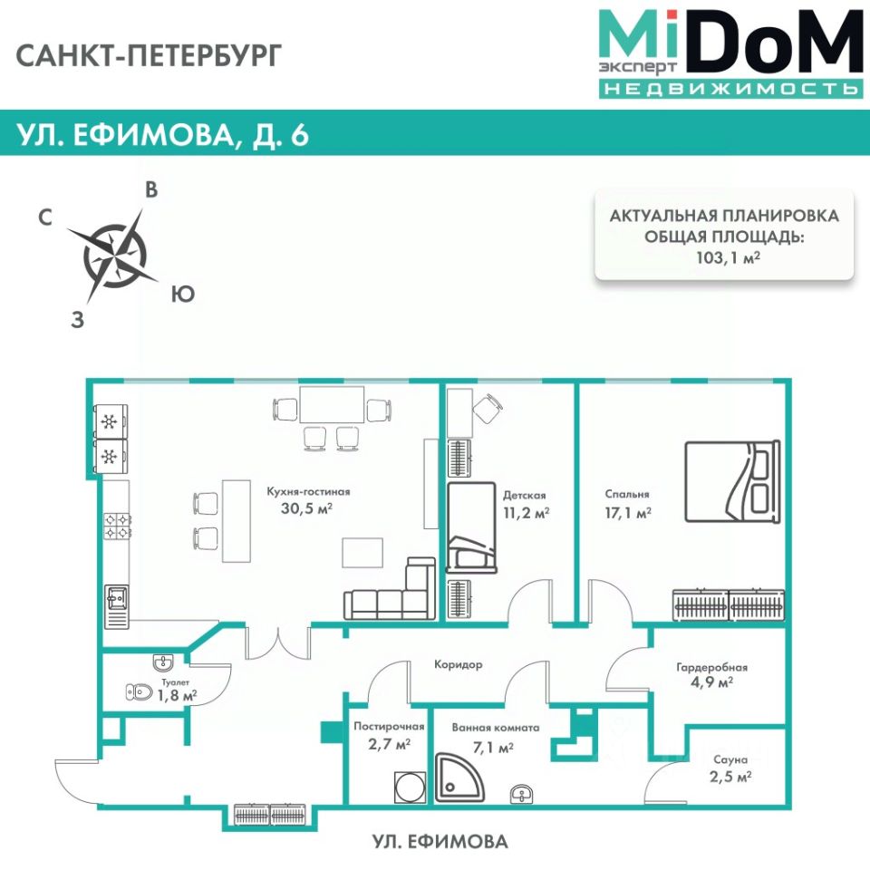 + Квартира просторная, общей площадью 103,1 кв.м.