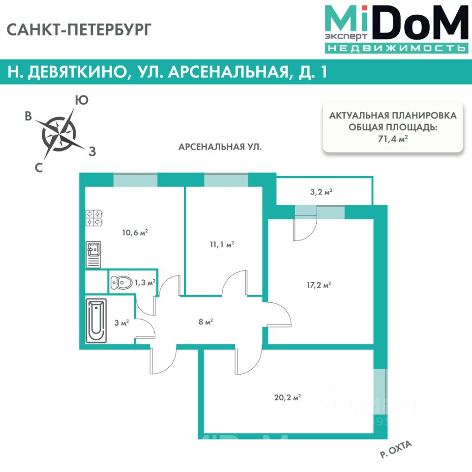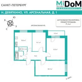 * Общая площадь: 71,4 м²