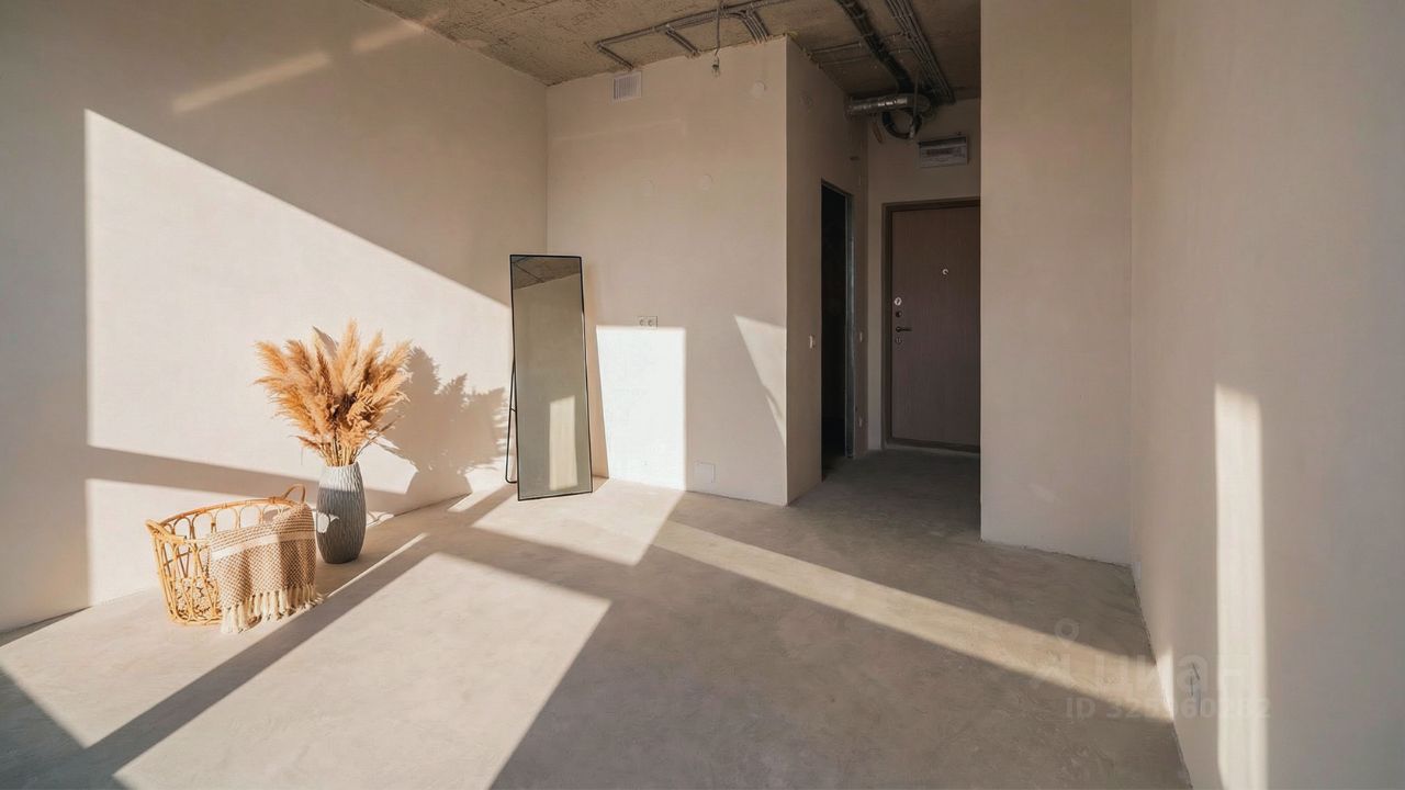 Внутри выполнена предчистовая отделка: разведена электрика, отопительная система смонтирована в полу, а ровная стяжка готова к дальнейшей отделке. Фасад студии выходит в тихий, закрытый двор, где застройщик создал уютные детские игровые площадки, спортивные зоны, зоны отдыха и живописную зеленую аллею с арт-объектами, создающую особую атмосферу уюта и гармонии.
