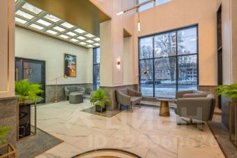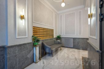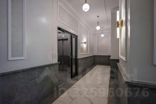 Центральная входная группа жилого комплекса выполнена из керамогранита под мрамор с архитектурными элементами в виде колонн с акцентными латунными вставками. На стенах используются панели под светлый оникс с подсветкой. В холлах парадных на стенах и полу будет уложен керамогранит с текстурой натурального камня и мрамора, а также установлены декорированные молдинги на стенах.