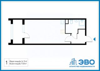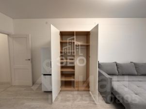 Студия меблирована, ванная комната полностью укомплектована, имеются теплые полы. При продаже вся техника и мебель останется: холодильник, варочная панель, вытяжка, стиральная машинка, кухонный гарнитур, раскладной диван, шкаф и гардеробная для вещей.