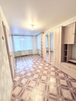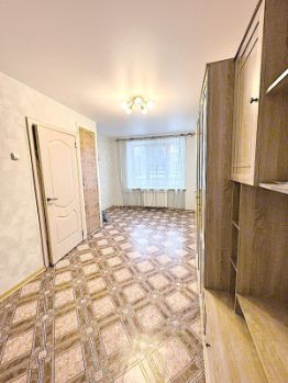 Просторная комната: Планировка позволяет легко зонировать пространство — обустроить детский уголок, рабочий кабинет или зону отдыха. Имеется встроенный шкаф.