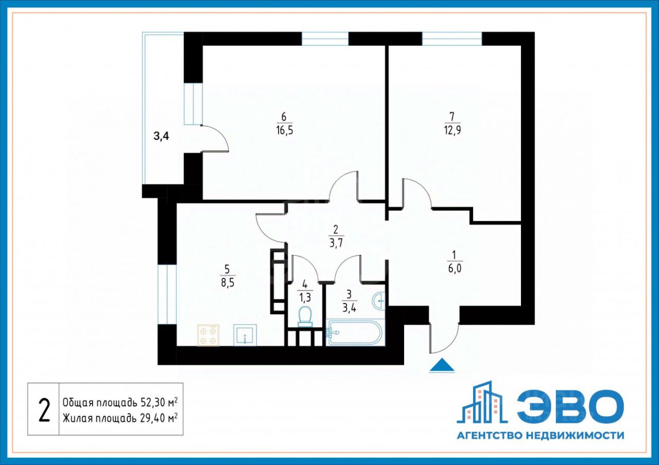 Арт. 128553756 В прямой продаже светлая и уютная двухкомнатная квартира в ЖК Цветной Город (застройщик ЛСР).