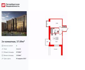 Удобная, классическая, функциональная европланировка, большая кухня-гостиная 15.04 м², просторная прихожая 4.35 м². Общая площадь квартиры - 37.09 м², жилая 13.04 м², высота потолка 2.75 м.