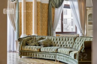 Квартира наполнена светом благодаря большим окнам и высоким потолкам 3.4 метра.
