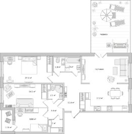 Продаётся трёхкомнатная квартира в жилом комплексе ЦДС "Чёрная Речка", Корпус 1