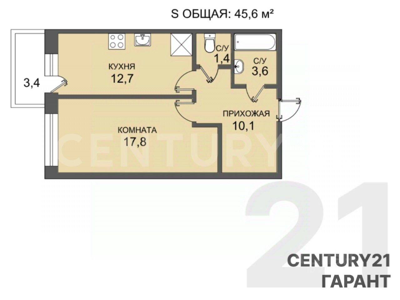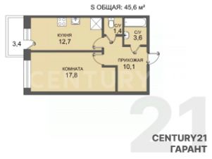 Квартира удобной планировки площадью 45,6 м2