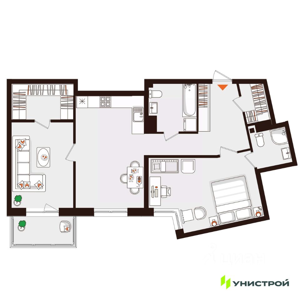 В квартирах предусмотрена предчистовая отделка с качественными материалами: металлические входные двери со smart-замками, улучшенная теплоизоляция, окна с энергоэффективными стеклопакетами, стяжка пола, скрытая разводка коммуникаций, радиаторы с терморегуляцией. Входы в парадные оснащены домофонами с бесконтактным доступом и распознаванием лиц. Питьевая вода будет подаваться в каждую квартиру. Автоматизирован учет потребления ресурсов.