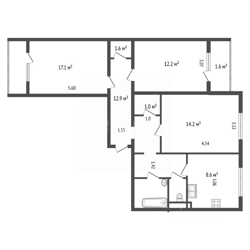 Идеальная планировка! Три изолированные комнаты (17, 14 и 12 м²), создающие уют и индивидуальное пространство для всей семьи.