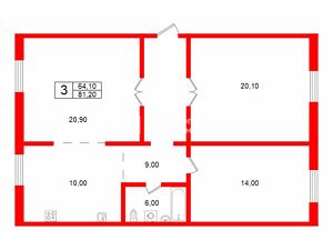 Планировка квартиры на две стороны дома, с изолированными комнатами правильной формы (20.1 ,20.9.,14.1,) м2. Светлая кухня -гостинная 10 м2 . Пол с подогревом в ванной комнате и кухне! Сан узел совмещён.