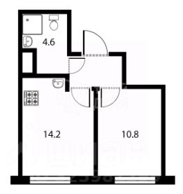 - Комната 10.8 кв.м, кухня 14.2 кв.м