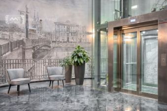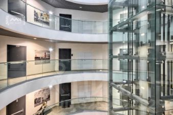 Дом находится под круглосуточным видеонаблюдением и охраной. Закрытый двор, консьерж-сервис. Автоматизированный подземный паркинг. Лобби украшает красивый атриум с прозрачным куполом и панорамным лифтом.