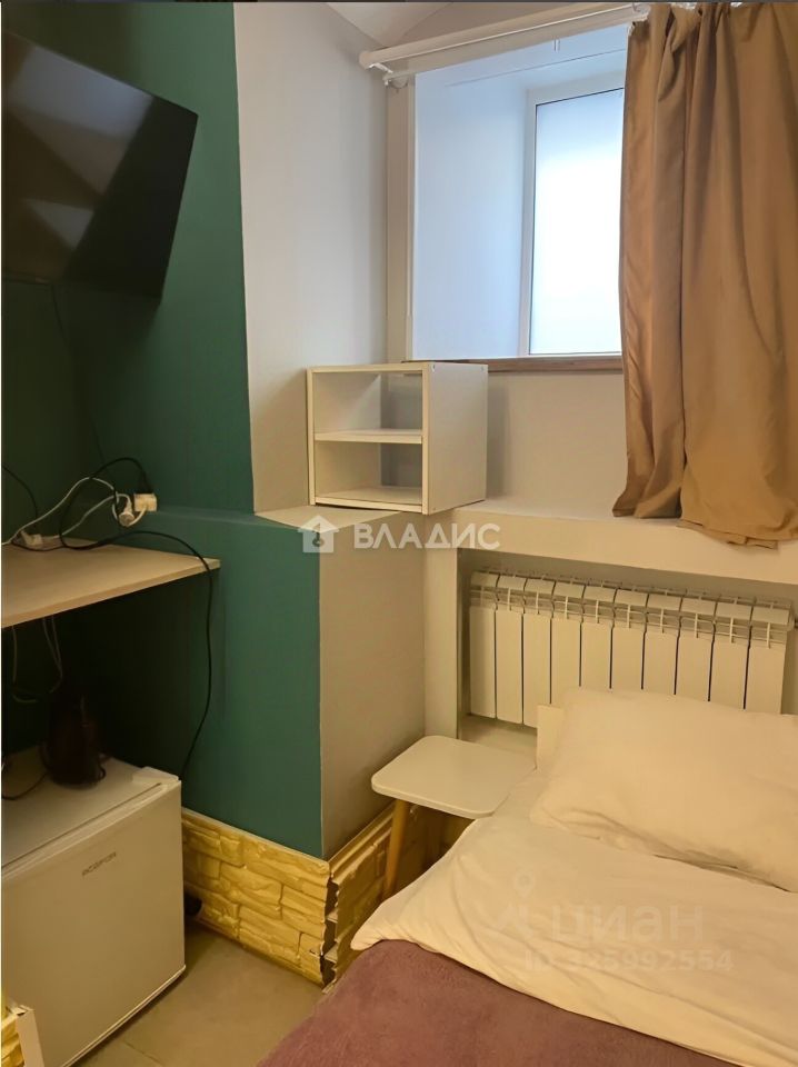 Студия с окном имеет общую площадь 10 кв. м, из которых около 6 кв. м — жилая площадь, а 3 кв. м — кухня.
