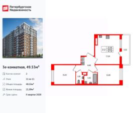 Удобная, классическая, функциональная европланировка, большая кухня-гостиная 17.04 м², вместительная прихожая 6.09 м². Общая площадь квартиры - 49.53 м², жилая 21.09 м², высота потолка 3 м.