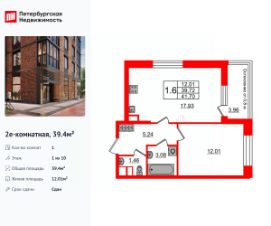 Удобная, классическая, функциональная европланировка, большая кухня-гостиная 17.93 м², просторная прихожая 5.24 м². Общая площадь квартиры - 39.4 м², жилая 12.01 м², высота потолка 2.77 м.